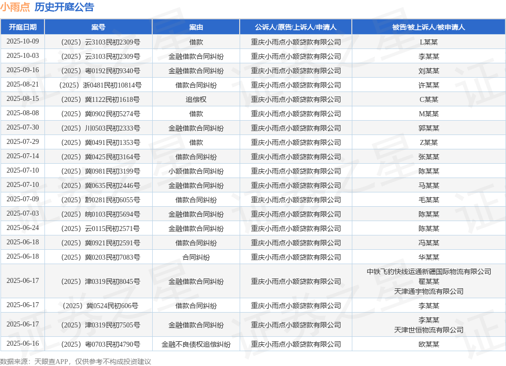 本站消息股票配资论坛是什么,根据天眼查APP显示,近日公布了一则重庆小雨点小额贷款有限公司作为原告/上诉人的开庭公告,详细内容如下:
